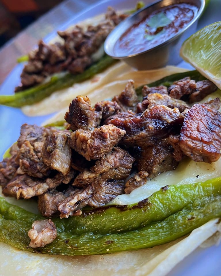 Satisfy your taco cravings with our Tacos Jaas! Tender carne asada on top of melted cheese and roasted chile verde, all wrapped in warm tortillas. It's a delicious combination of savory flavors and textures that will leave your taste buds wanting more.