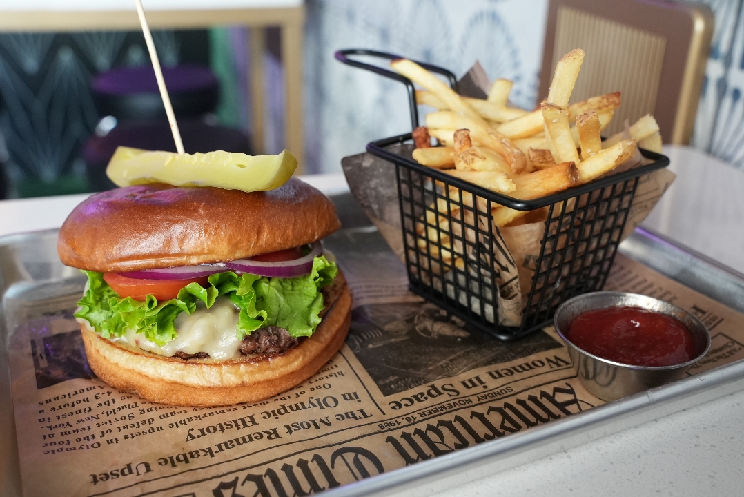 A classic combination of juicy beef pattie, pepper-jack cheese, pickles, fresh lettuce, tomato and onions all packed into one delicious burger.