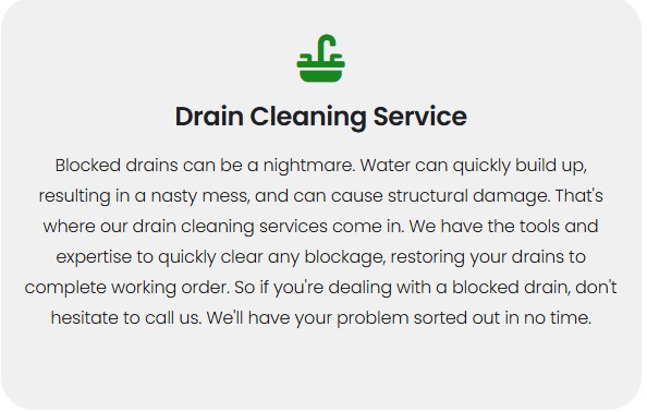 Blocked drains can be a nightmare. Water can quickly build up, resulting in a nasty mess, and can cause structural damage. That's where our drain cleaning services come in. We have the tools and expertise to quickly clear any blockage, restoring your drains to complete working order. So if you're dealing with a blocked drain, don't hesitate to call us. We'll have your problem sorted out in no time.