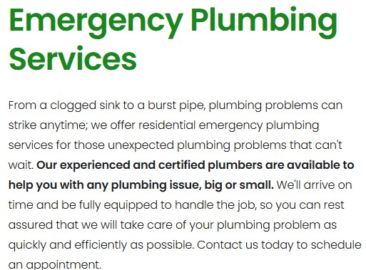 From a clogged sink to a burst pipe, plumbing problems can strike anytime; we offer residential emergency plumbing services for those unexpected plumbing problems that can't wait. Our experienced and certified plumbers are available to help you with any plumbing issue, big or small. We'll arrive on time and be fully equipped to handle the job, so you can rest assured that we will take care of your plumbing problem as quickly and efficiently as possible. Contact us today to schedule an appointment.