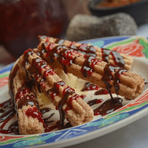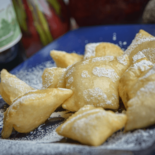 Light pillows of dough fried crisp, sprinkled with powder sugar and drizzled with agave nectar
