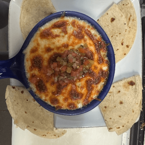 A fondue of chopped anaheim chiles and melted Monterey jack, served with salsa fresca and warm flour tortillas