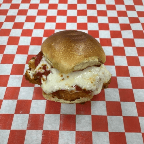 Full parmesan crusted breaded chicken breast covered in marinara and mozzarella cheese. Enjoy this convenient Chicken Parm Slider.