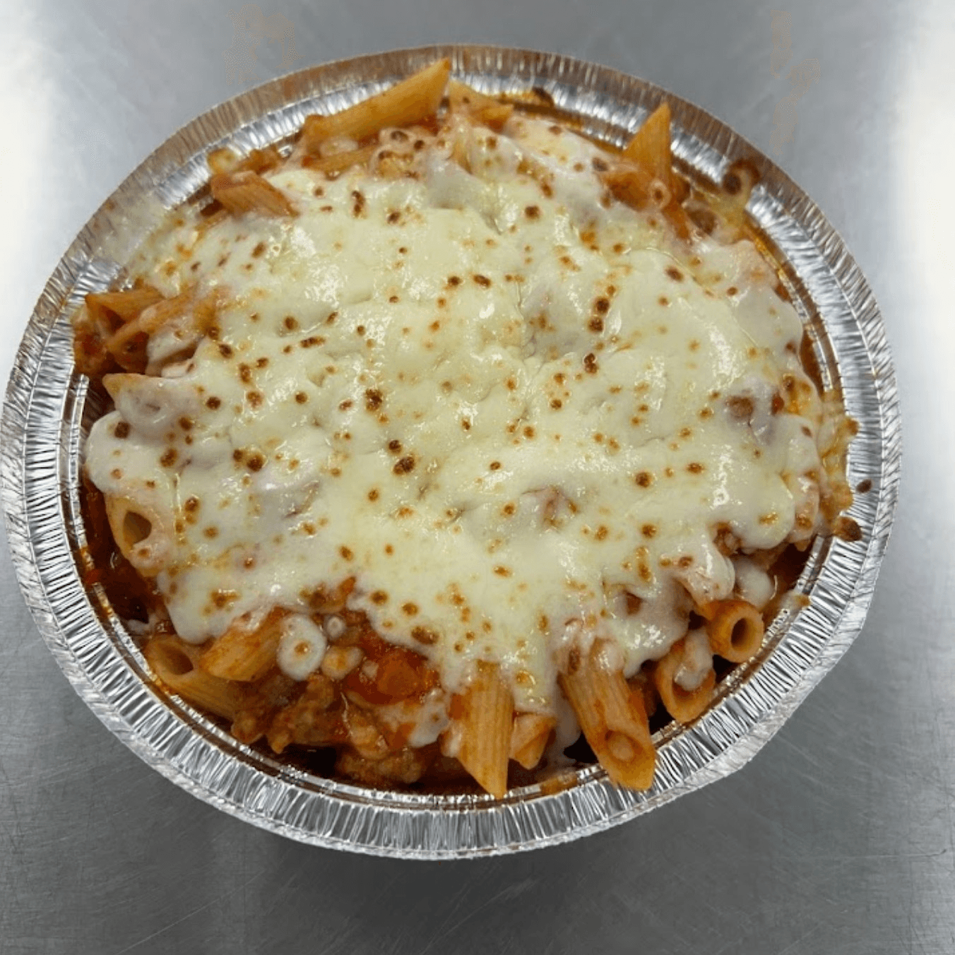 1/3 lb of Pasta, Marinara and a savory large 2oz Meatball with a piece of Garlic Bread.