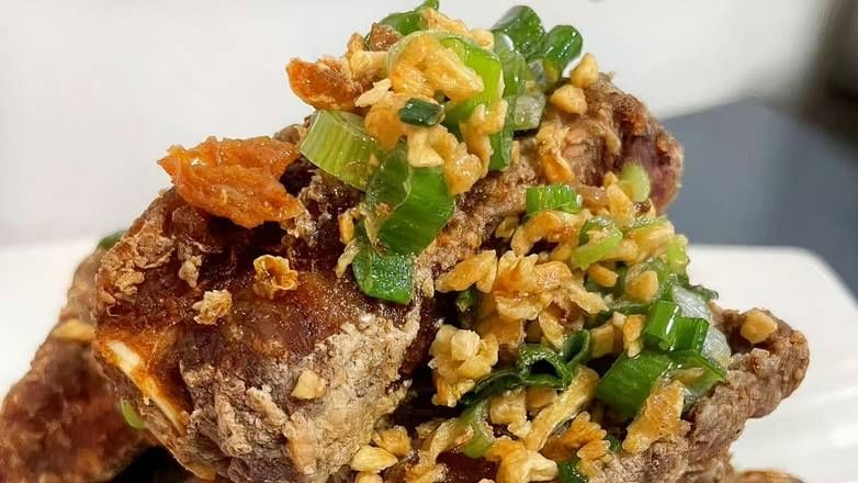 Tender ribs glazed in a sweet and sour sauce, offering a perfect balance of tangy and savory flavors.