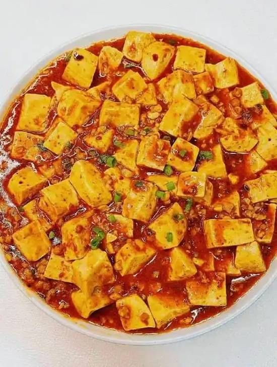 Silken tofu in a spicy, savory sauce with minced pork and green onions, a classic Sichuan delight.