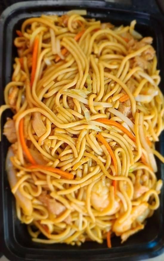 Noodles with shrimp, tossed in a savory sauce for a delightful lunch experience.
