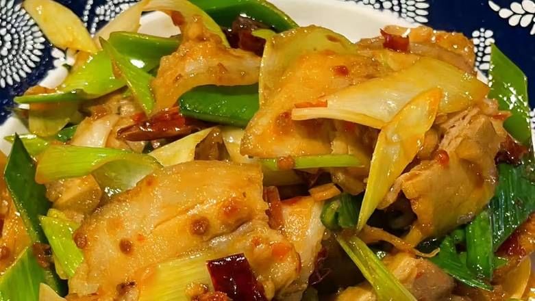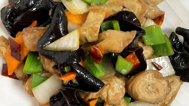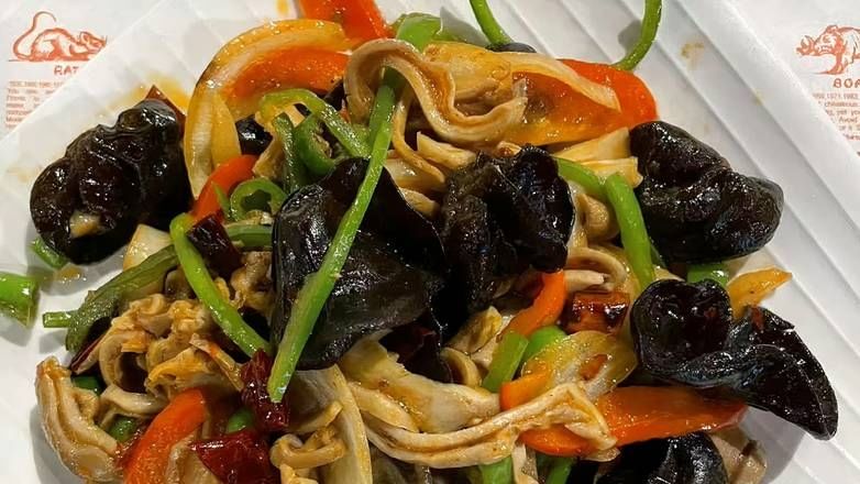 Spicy pork stomach strips, wok-tossed for a fiery kick.