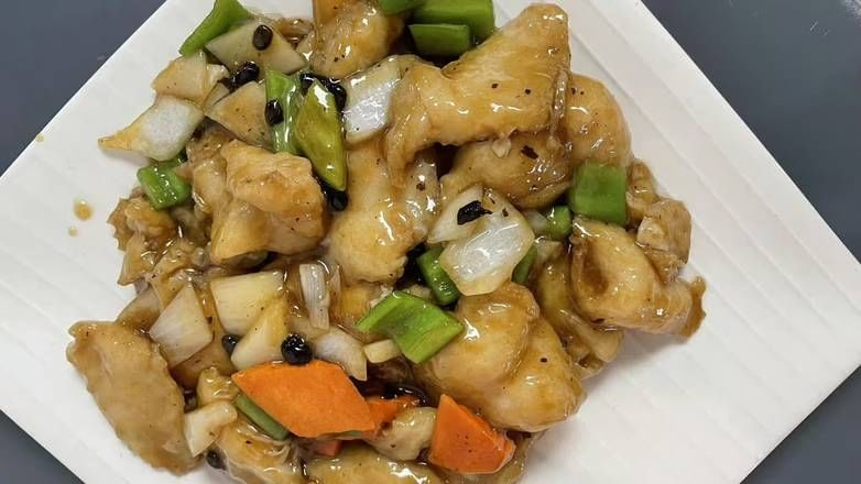 Tender fish fillet with savory black bean sauce, perfect for seafood lovers seeking a rich, flavorful experience.