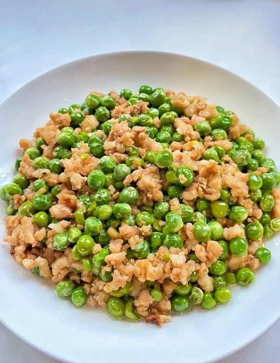 肉末與豌豆燉煮,传统四川家常菜,口味清淡。 Traditional Sichuan homestyle cuisine with mild flavors.