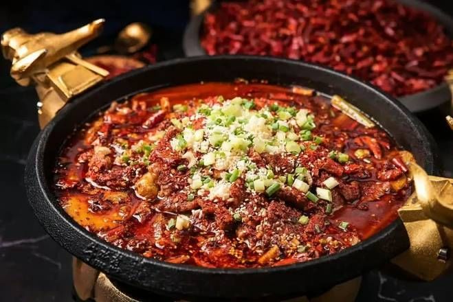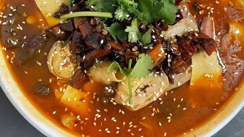 Spicy. Your choice of two meats (tilapia, beef, lamb, intestine) with fresh vegetable served in a Szechuan style spicy broth.