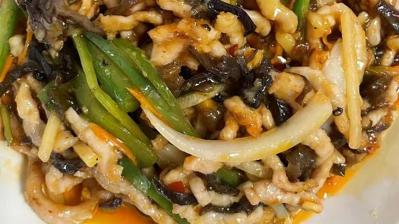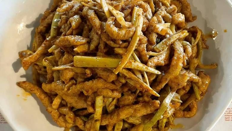 Spicy shredded pork with a savory, aromatic sauce, offering a bold and flavorful experience.
