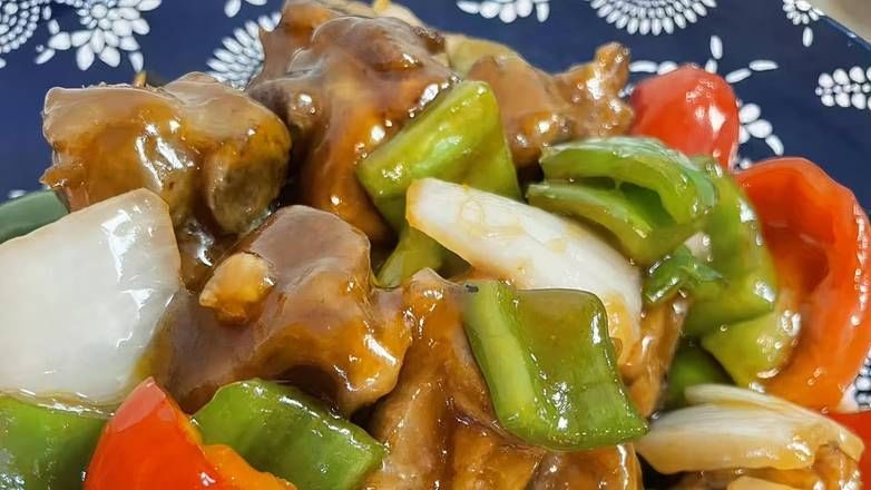 Tender chicken in a savory sauce with a hint of sweetness, a popular choice for a flavorful meal.