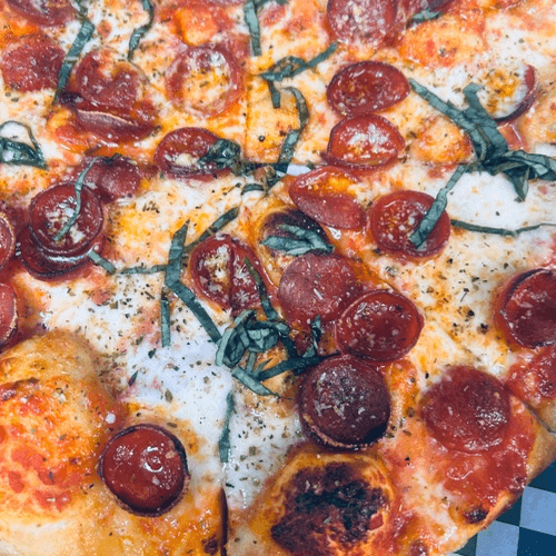 marinara, fresh mozzarella, pepperoni, oregano, fresh basil, olive oil