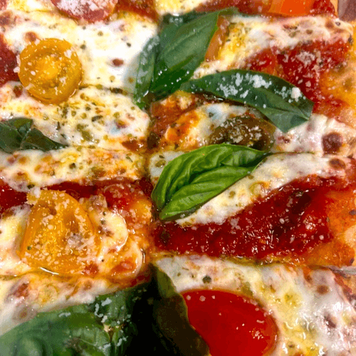 marinara, fresh mozzarella, heirloom tomato, oregano, fresh basil, olive oil