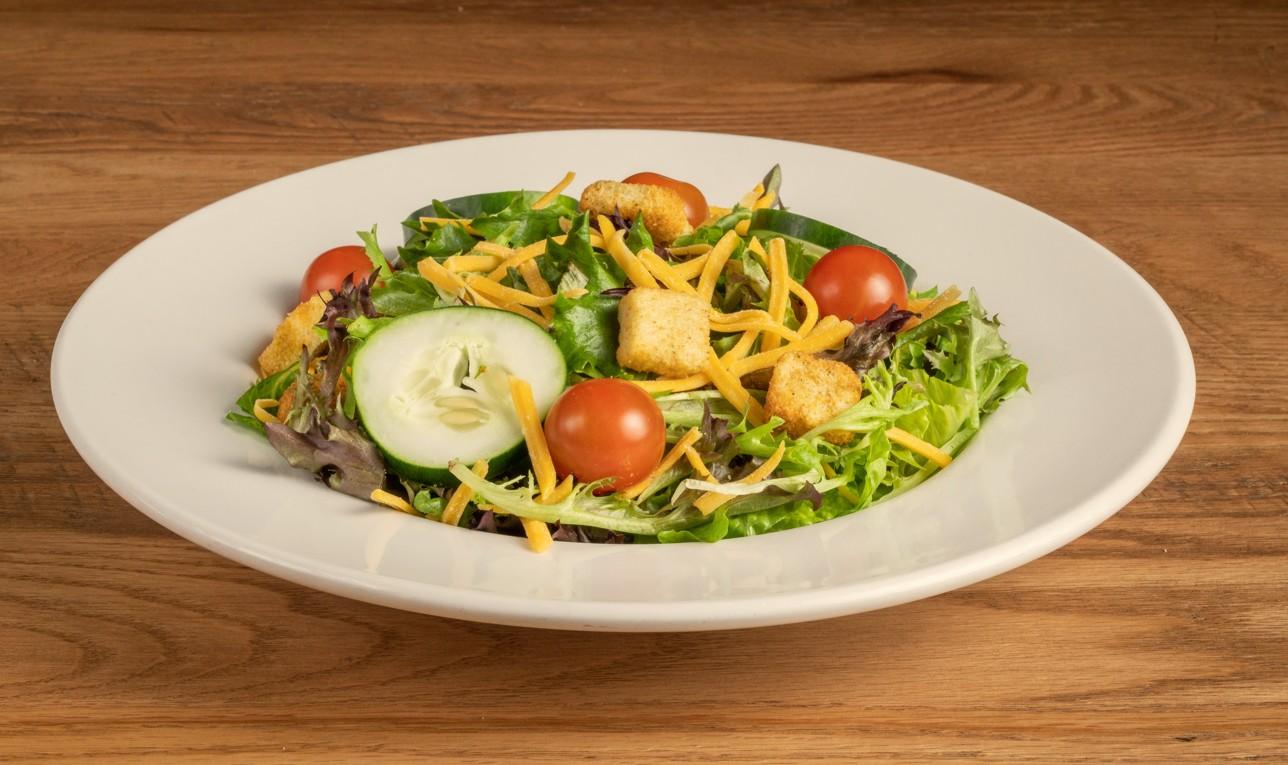 Mixed greens with shredded cheddar cheese, cucumbers, croutons, tomatoes and your choice of dressing. Add grilled or crispy chicken +3.99