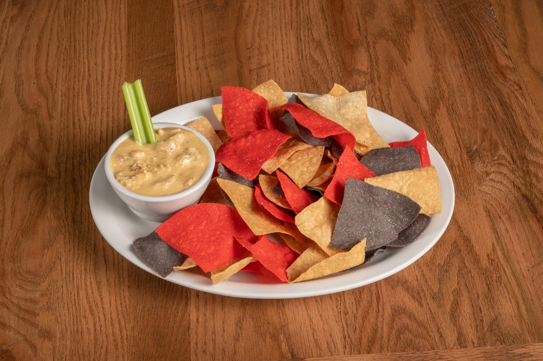 Velvety blend of cream cheese, Anchor Bar’s original Bleu cheese and our original (medium) Anchor Bar sauce with chunks of chicken. Served warm with tortilla chips.