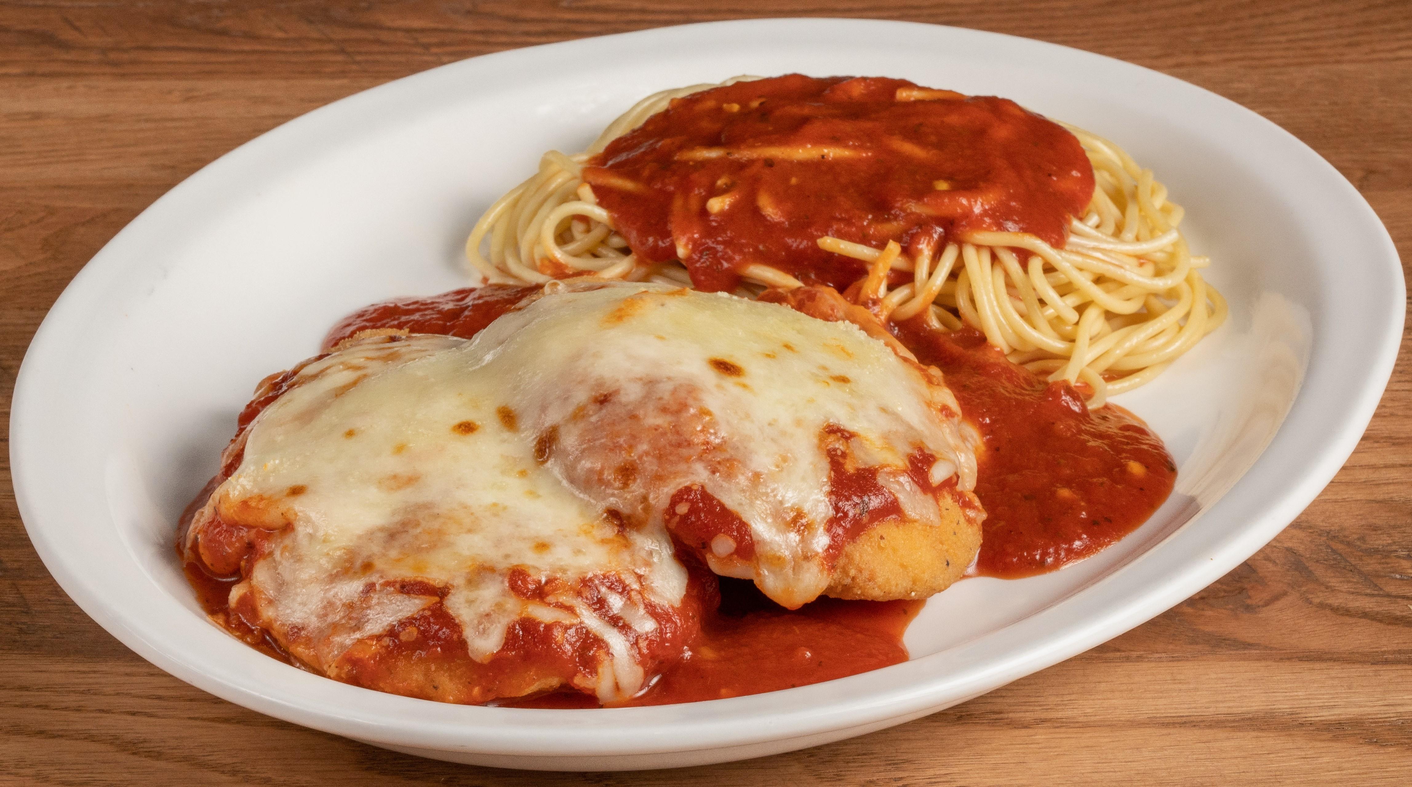 Tender, FRESH chicken breast lightly breaded and fried. Topped with our Anchor Bar homemade pasta sauce, parmesan and mozzarella cheese. Served with spaghetti.