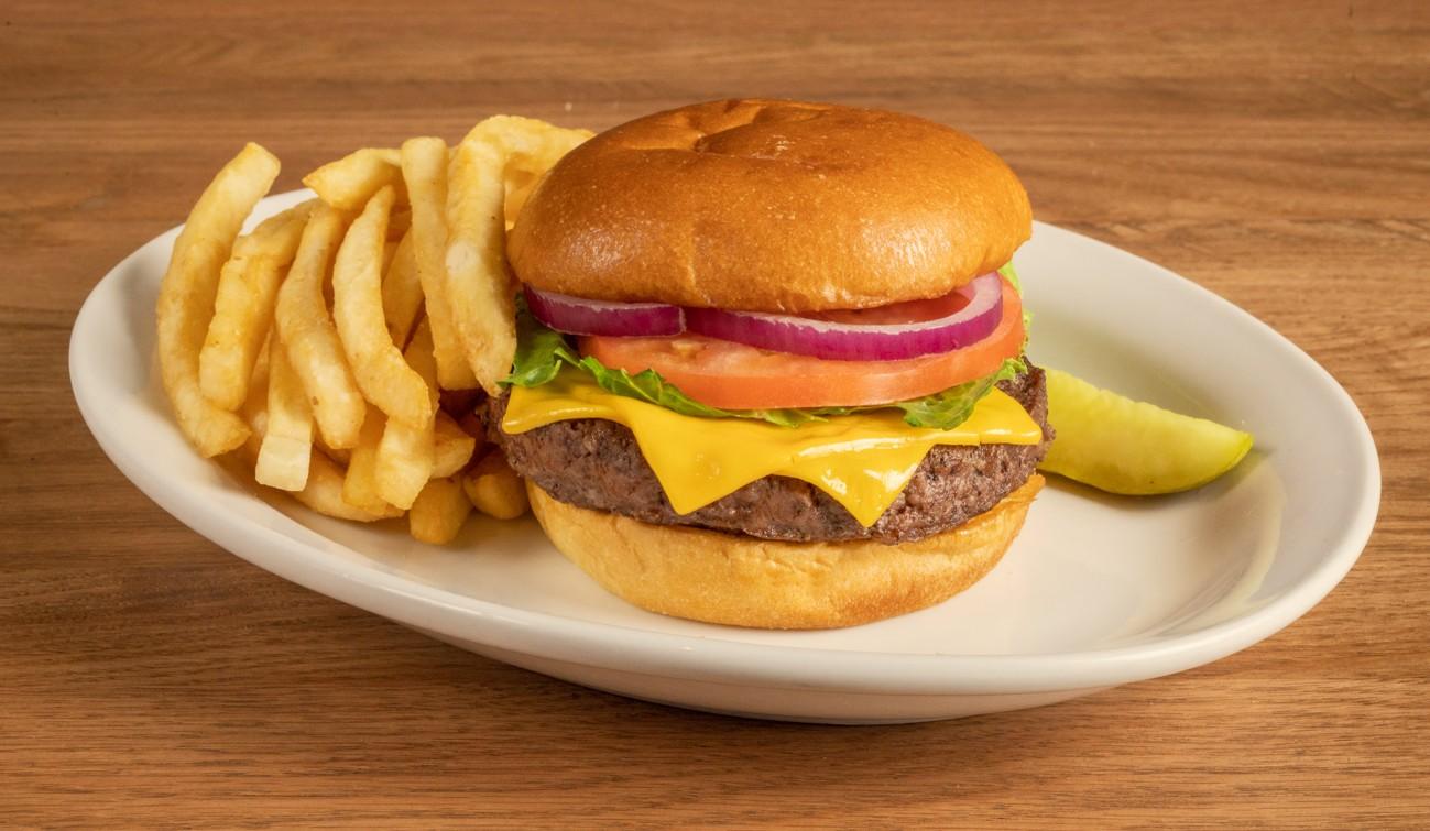 Our fresh Angus beef patty topped with American cheese, lettuce, tomato and red onion on a brioche roll.