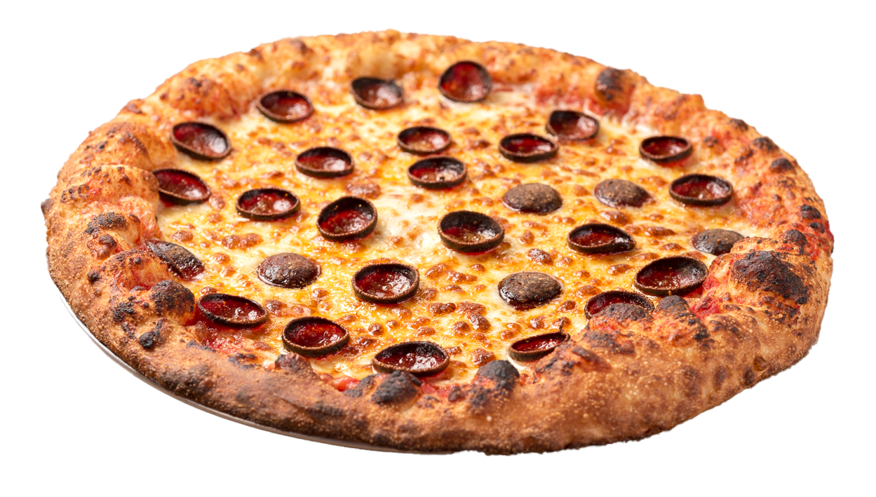 Anchor Bar pizza sauce, mozzarella cheese, topped with cup & char pepperoni.