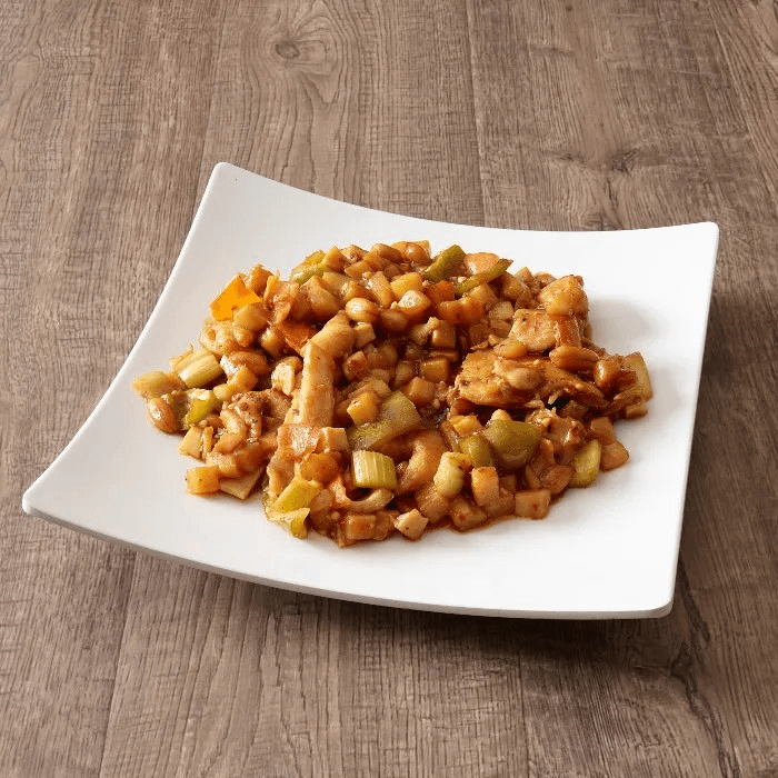 Your choice of protein wok-seared with cabbage, mushroom pieces, bamboo shoots, yellow and green onions, celery, carrots, and bean sprouts served with crispy noodles