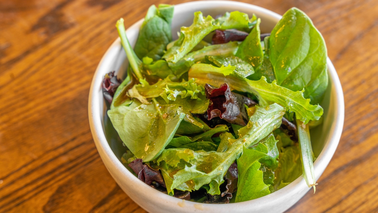 Green spring mix served with a homemade ginger dressing.
