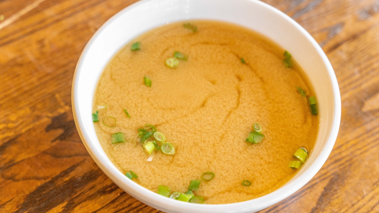 Bowl of miso with Tofu & Green Onion.