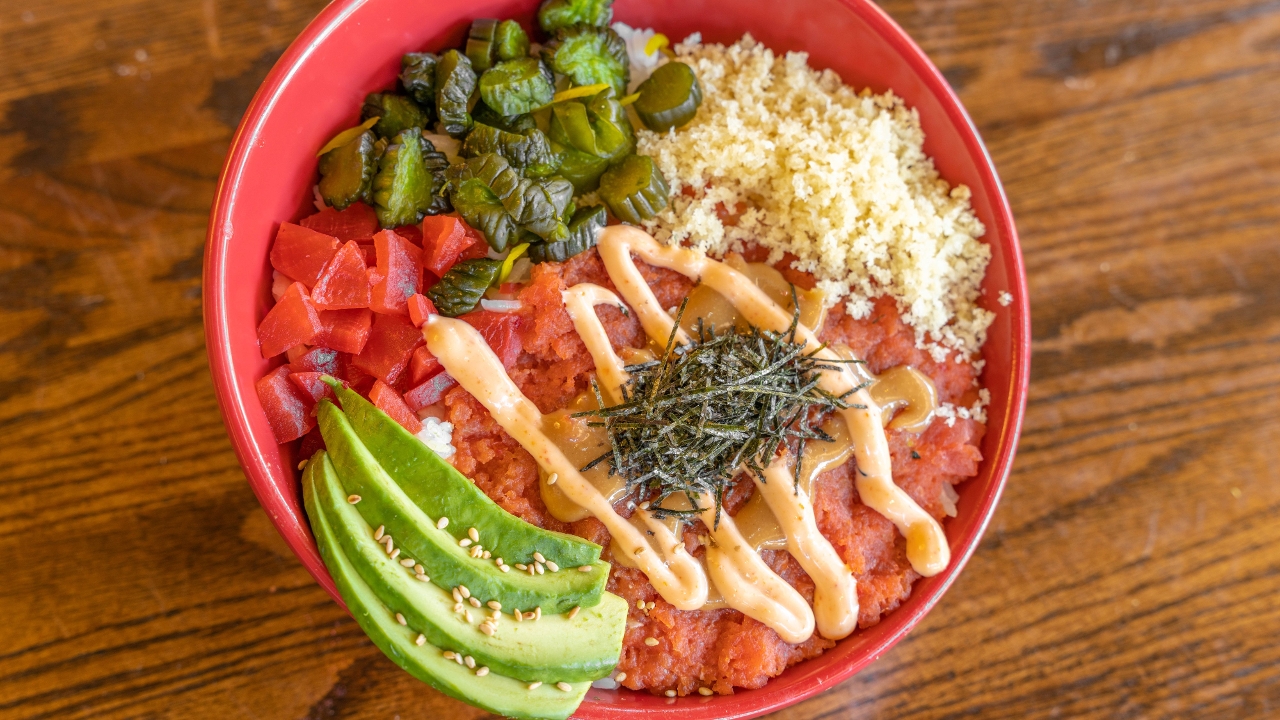 Choice of spicy tuna or spicy salmon, or spicy yellowtail served with avocado, japanese pickles, tempura flakes over seasoned rice and spicy mayo and miso sauce.