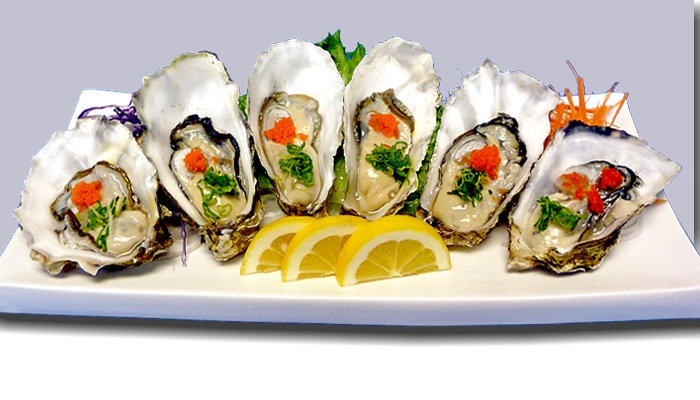 6 Fresh raw oysters on a half shell served with a ponzu sauce, masago & green onions.